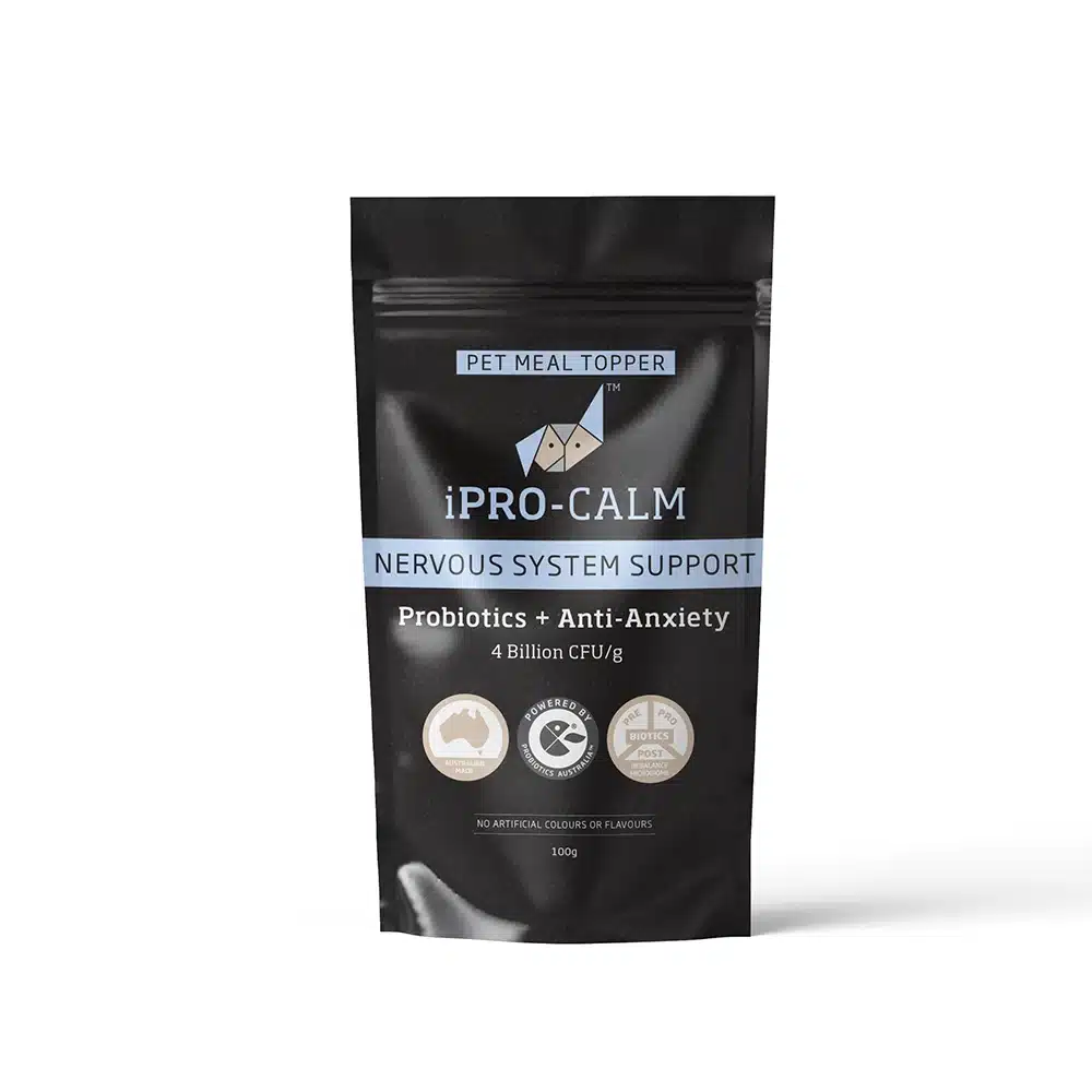 Ipromea iPro-Calm provides targeted, functional support for your pet’s nervous system. Anxiety is a huge problem for many pets. However, with a balanced diet plus scientifically targeted pre and probiotics, you can help to calm your pet and assist with treating their anxious behaviours.?Ipromea iPro-Calm feeds your pet’s good gut bacteria to restore calm and contains hemp powder, chamomile extract and valeriana officinalis for their potent calming properties. Suitable for dogs and cats, Ipromea iPro-Calm contains a blend of pre and probiotics to rebalance the gut microbiome and nervous system.?Working from the inside out, it helps to maintain a healthy nervous system, improving your pet’s overall health and wellbeing. Features: