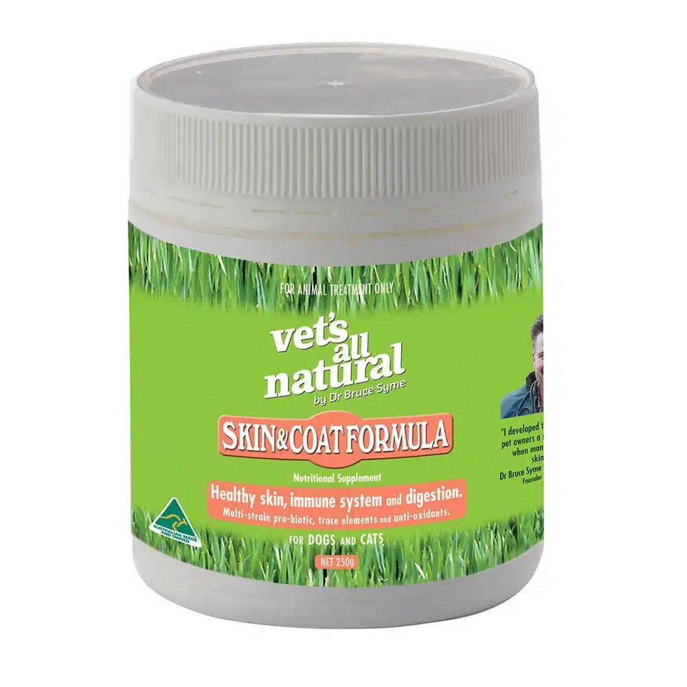 Vet’s All Natural Skin & Coat Formula is a nutritional supplement for dogs and cats that is scientifically formulated by Dr Bruce Syme, a leading veterinarian.