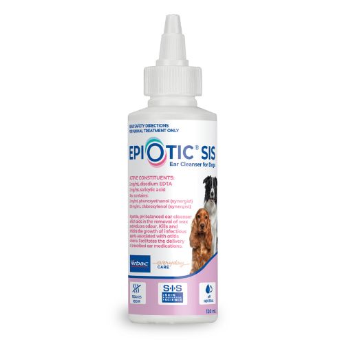 Virbac Epi-Otic SIS Skin and Ear Cleanser cleans gently with a pH balanced, non irritating formula. Product Details ✅ Helps with the prevention of ear infections ✅ Assists with removal of ear wax and reduces odours ✅ Gentle, pH balanced ear cleanser ✅ Inhibits the growth of infectious agents associated with otitis externa ✅ Has exhibited antimicrobial properties against Australian clinical isolates of bacteria and yeast representing the most common causes of canine otitis externa ✅ Corrects excessive moisture in the ear canal ✅ Facilitates delivery of prescribed ear medications