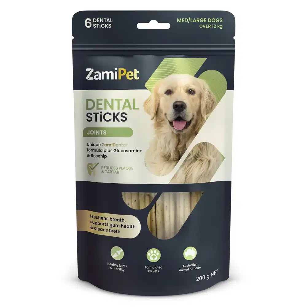 ZamiPet Dental Sticks Joints support your dog’s overall oral health, as well as healthy joints with added glucosamine and rosehip.